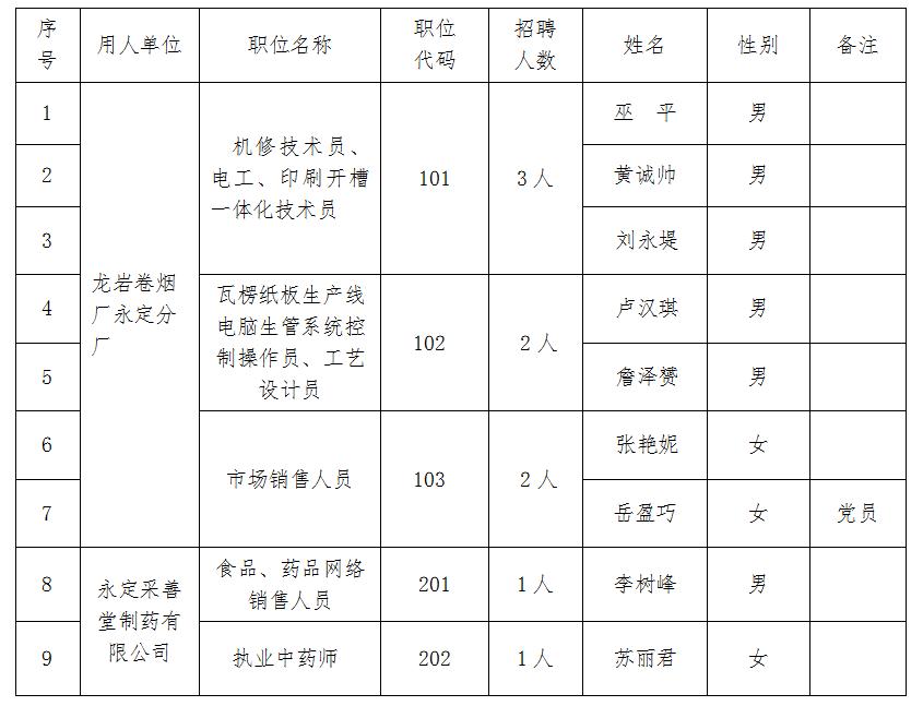 福建海峡客家投资发展集团有限公司公开招聘拟录用人员公示